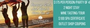 Girlfriends Getaway 2 Night Stay Wine Tasting-Tour $100 Spa Certificate Outlet Shop Coupons